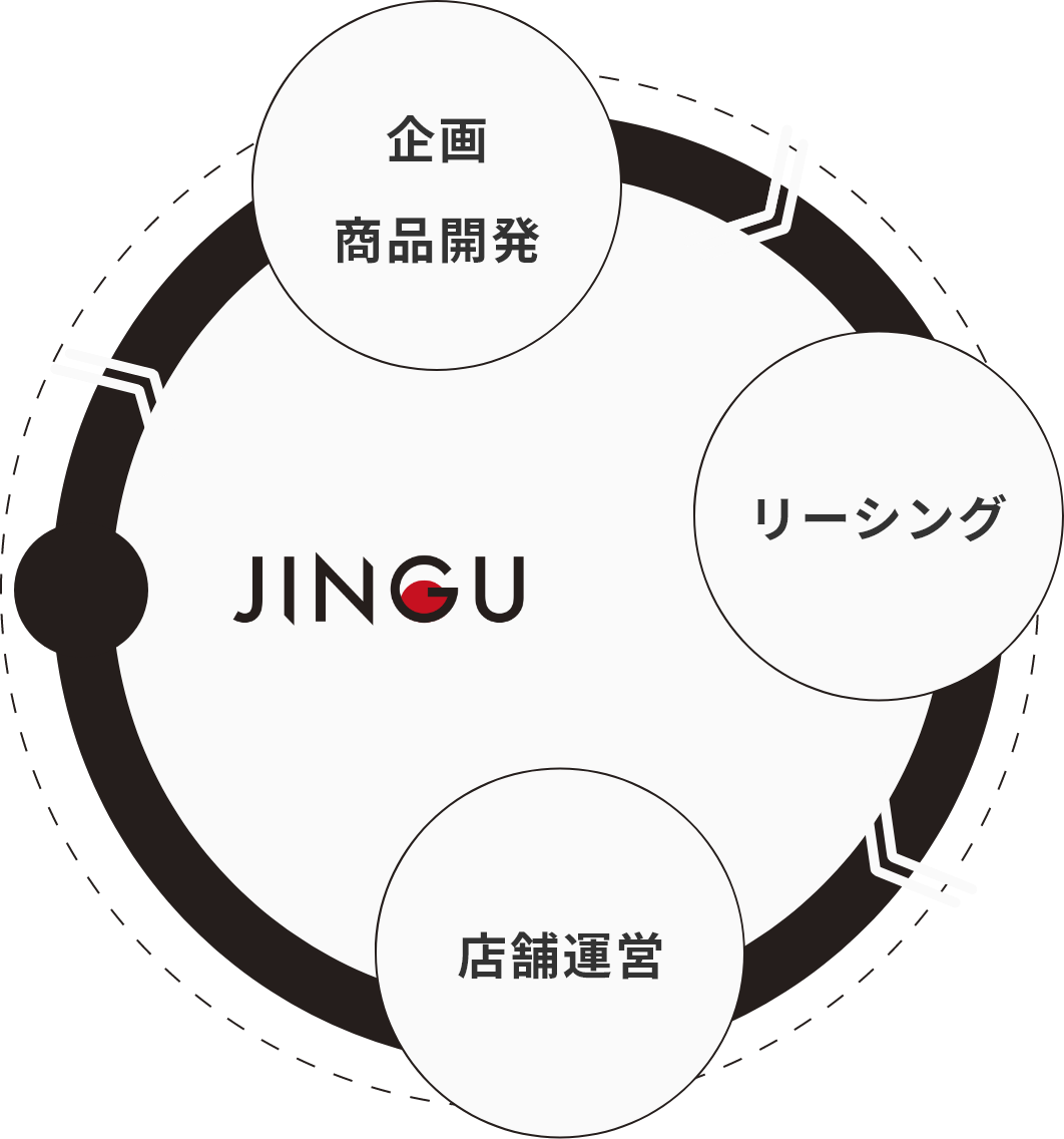 JINGUは立地やターゲットに合せて最適な売り場づくりをサポートします。